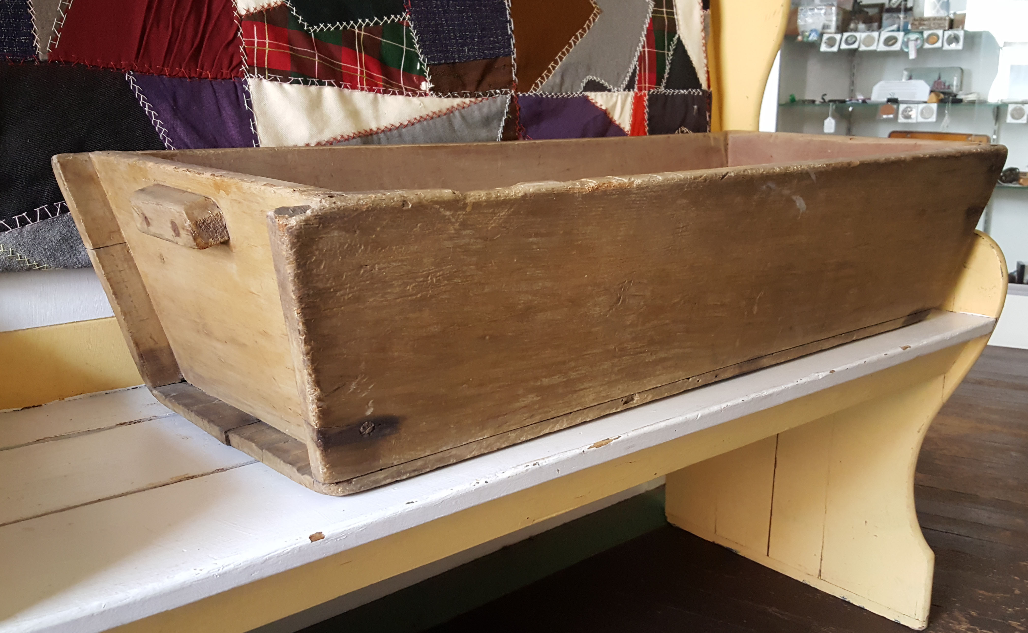 ORIGINAL MUSTARD PAINTED ANTIQUE DOUGH BOX 36" x 15" $225.00